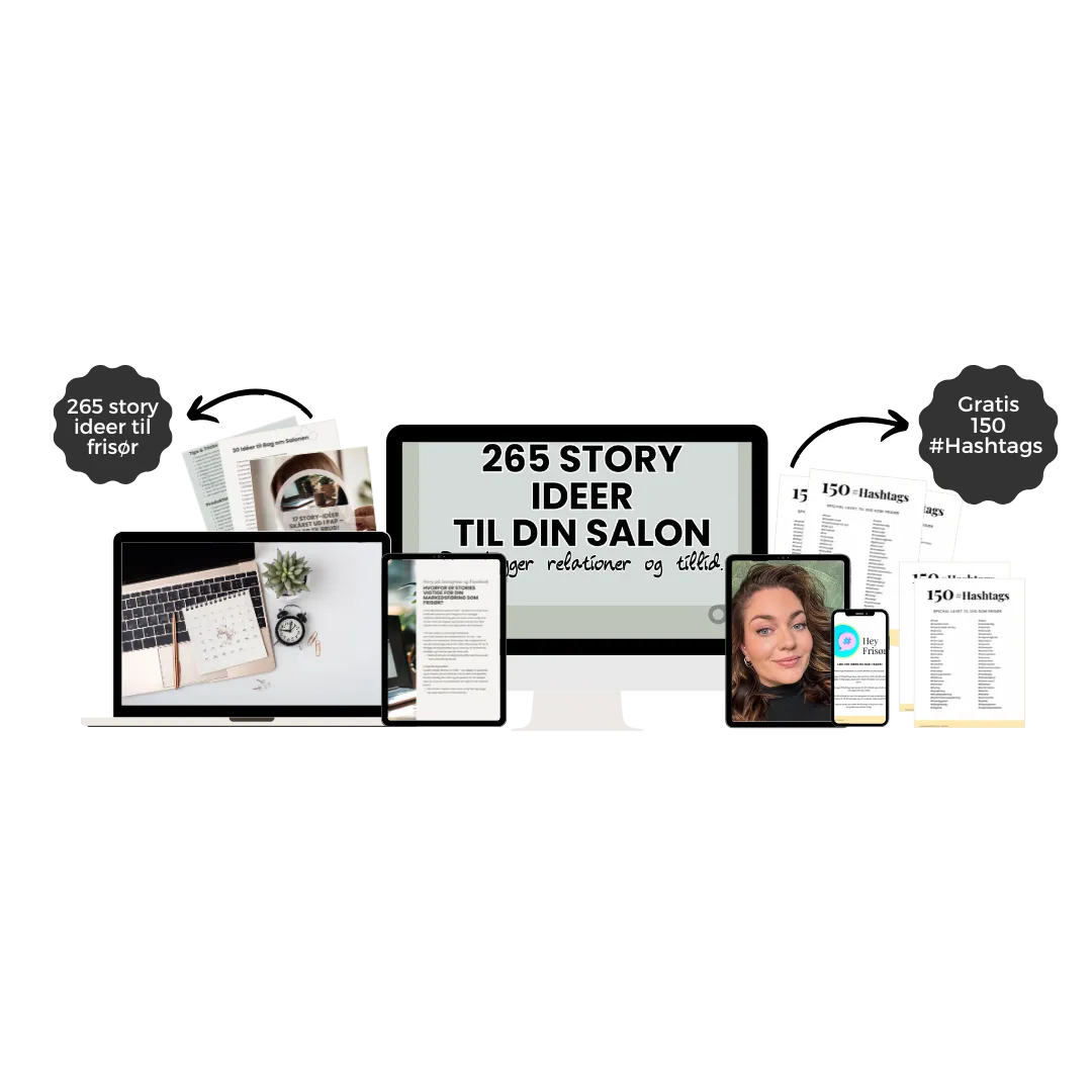 Ud over de 265 idéer får du også en værdifuld guide, der forklarer, hvordan stories kan styrke din salons synlighed, skabe stærkere relationer med dine følgere og hjælpe dig med at tiltrække flere kunder – alt sammen på en enkel og effektiv måde.
